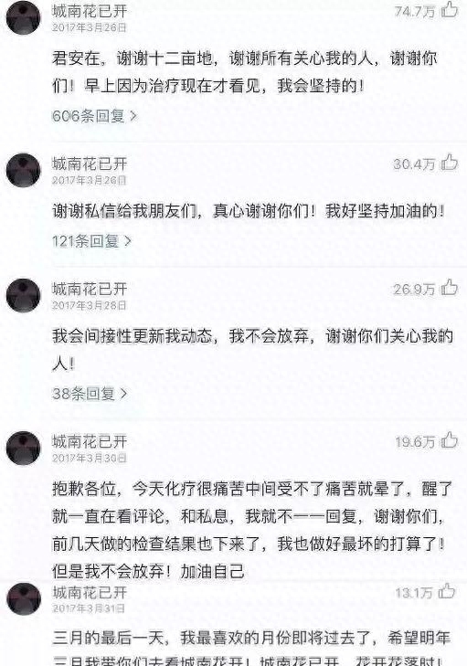此后的日子。人们经常可以看到,一个叫 “城南花已开” 的账号在评论中出现时常给大家回复不然大家担心