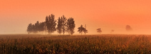 华北平原的玉米地连成一片,无边无际,天地连成一线。