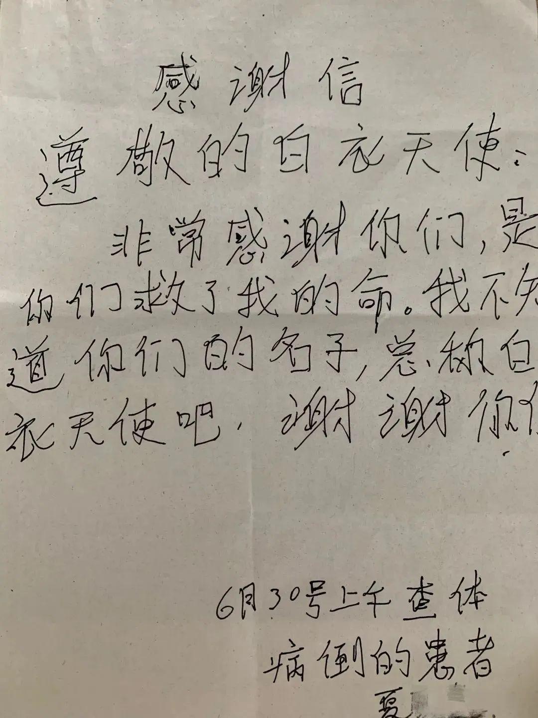 康复出院的夏阿姨再一次来到医院,特意送来了自己手写的感谢信。