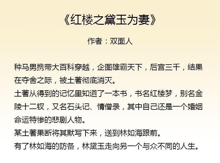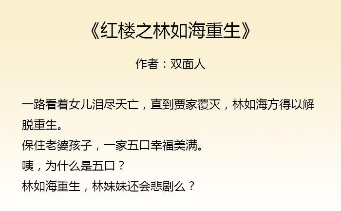 这些故事主要都是重生到了红楼梦,重生者和林妹妹最后都获得幸福的故事。