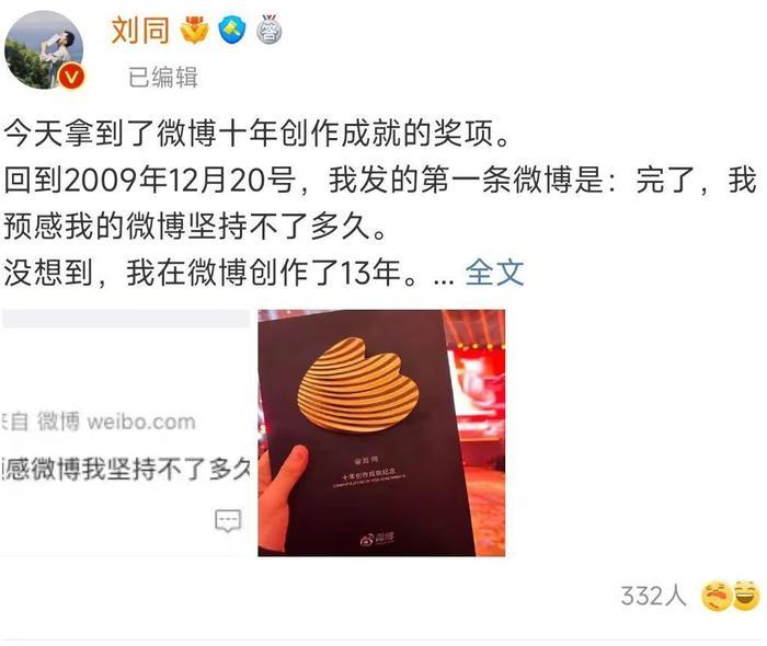 2009年,@刘同拿到一个微博的内测名额,成为了微博最早的一批用户。十余年后,他的title一个比一个响亮,比如光线影业副总裁、青年作家......但在微博上,他最大的标签还是拥有超过2000万粉丝的元老级大V。