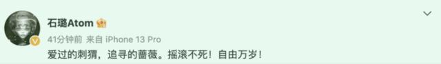 “爱过的刺猬,追寻的蔷薇。摇滚不死!自由万岁!”