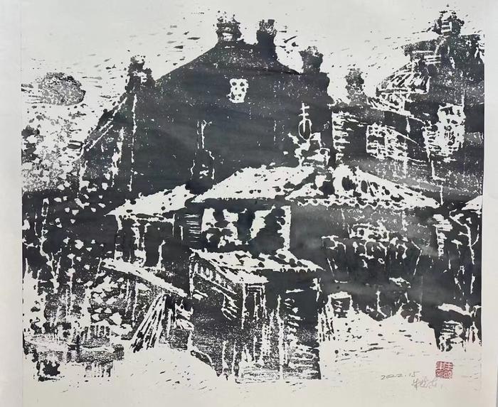 为了不让墨粘地浑身都是,我们常常要把多余的墨用纸覆盖后,轻轻擦去。一次偶然的机会,我发现拓印在纸上的墨迹,形成了不错的画面,晕染的效果也特别好。于是我就想,为什么不能把冰雕和版画艺术结合在一起呢?冰版画的想法就这么诞生了。