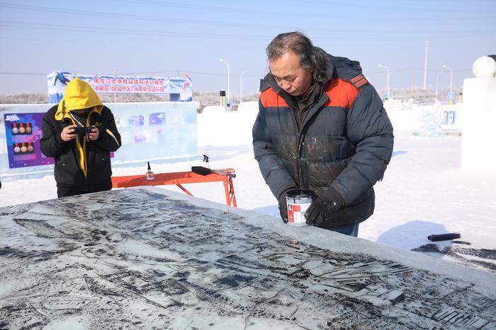 朱晓东进行大型冰版画创作。 朱晓东 图