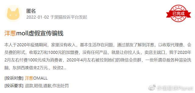话虽如此,但是网络上关于“洋葱集团涉传”的评论仍是铺天盖地。在黑猫投诉上,与“洋葱集团”相关的投诉有41条,其中虚假宣传、销售假货、退款难等词均高频出现。