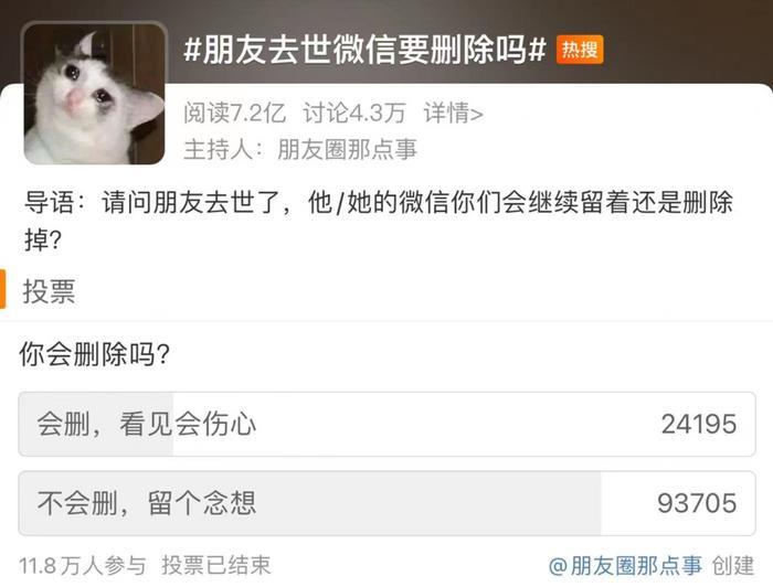 “朋友去世了,ta的微信你会继续留着还是删除?”