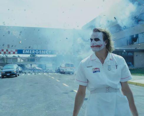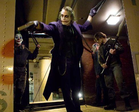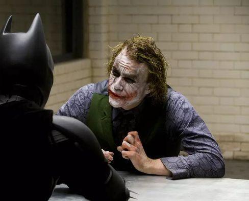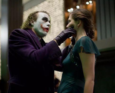 9.其他演员都被希斯莱杰吓到了。饰演瑞秋的玛姬第一次看到希斯莱杰穿上全身服装和画上小丑妆时,吓到不敢看他,就连饰演老管家的米高肯恩都会被他吓到忘了自己的台词,因为希斯莱杰只会在镜头前展示他古怪的声音和笑声,也让对戏的演员们在拍摄时都会吓了一跳。