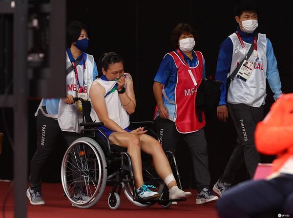 张蓓雯受伤离开赛场。IC photo供图,请勿转载
