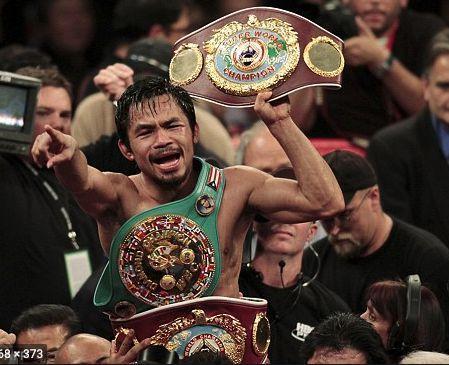 在接下来的几年中,帕奎奥进行了一系列备受瞩目的战斗,赢得了世界拳击协会(WBA)和IBF轻量级冠军,WBC和The Ring的初级轻量级冠军以及WBC轻量级冠军。他的崛起得到了美国教练的帮助弗雷迪·罗奇(Freddie Roach)逐渐将左手拳头变成了多面拳击手,而丝毫不影响他的天生侵略性或猛击能力。他是美国拳击作家协会和指环的战斗机年度在2006年和2008年。