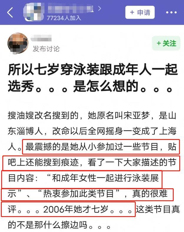 也正是因为王楚然的本名,让外界发现了她参加选美节目的过往,进而引发了更多争议——年仅7岁的王楚然就已经在镜头前穿着泳装、摆着各种姿势展示自己了。
