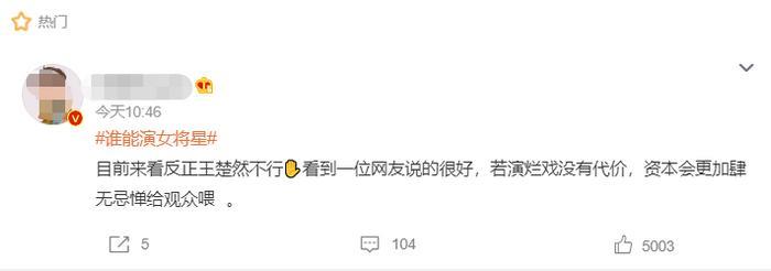 ——乍一看,95后小花能凭借作品引发讨论,可谓前途无量,实际情况却是,王楚然这波属于负面出圈,因为在剧中角色设定不佳,以至于影响了本人形象,到了待播剧集遭抵制、合作代言删除宣传的地步。