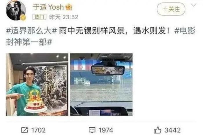 除了王楚然之外,最近还有两个年轻的明星翻了车,25岁的宋祖儿在台风天发图配文“杀青日台风来欢送”,参演了电影《封神》的26岁男星于适面对暴雨灾害,拍照发文“遇水则发”,一个比一个不知甚至不在乎民间疾苦——巧合的是,宋祖儿、于适和王楚然一样,都是年纪轻轻就进了娱乐圈发展。