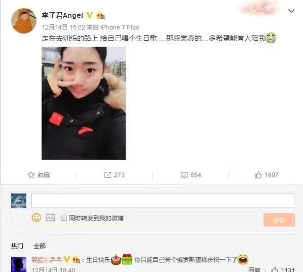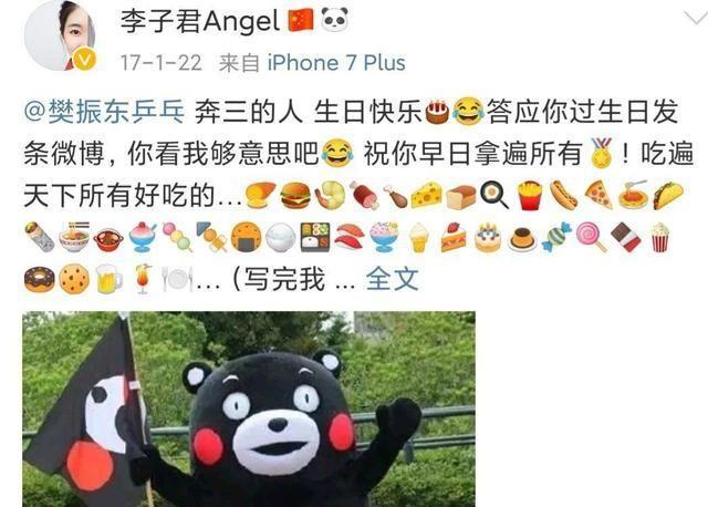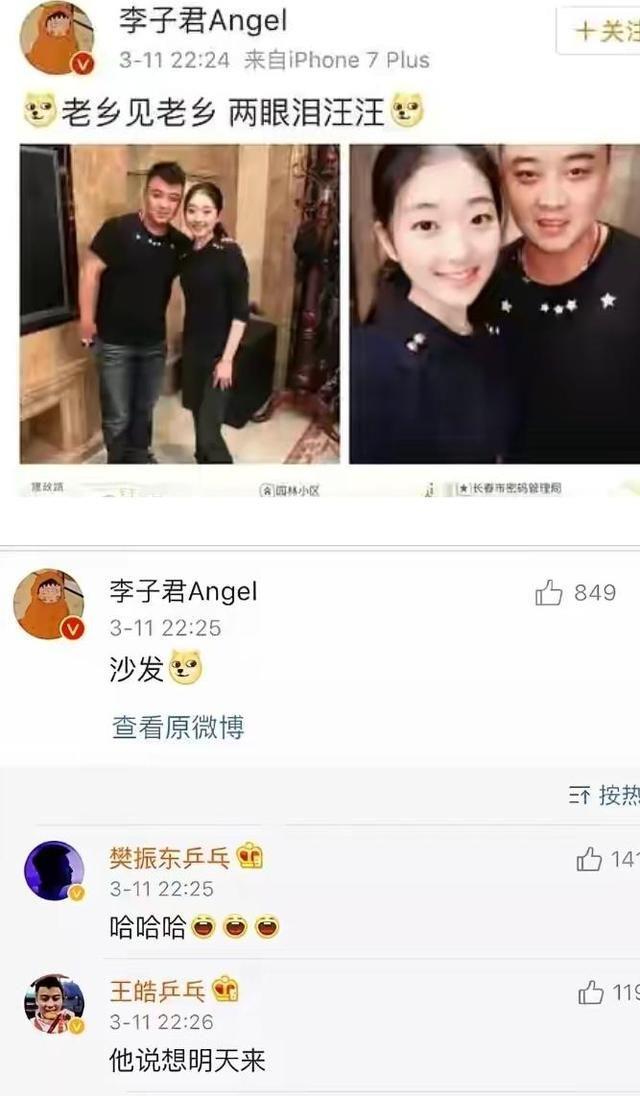 再后来2017年妇女节的时候,樊振东的一个举动让吃瓜朋友们觉得自己终于接近了真相。李子君在社交平台上祝福小公举节日快乐,樊振东一如既往的第一时间出来占沙发,说原来今天才是你的节日。这其中意味像极了恋爱中的男女,而后两人居然还在博文下面热聊了起来。