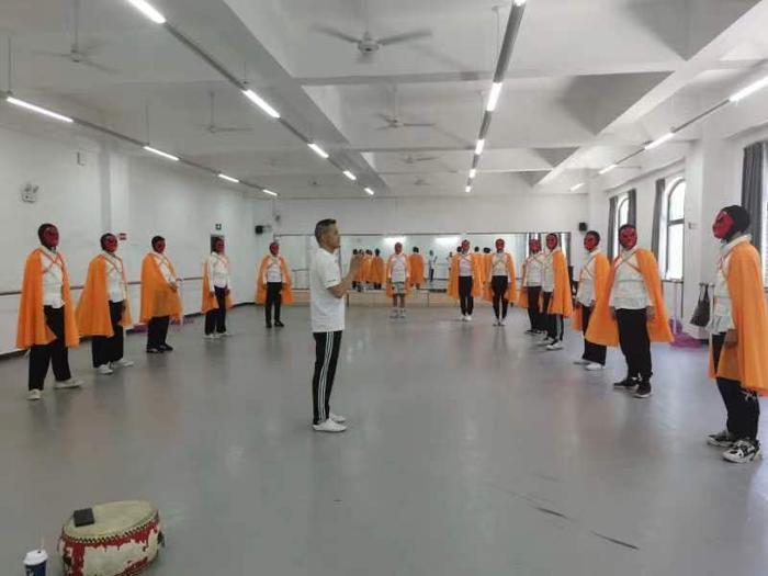 除了自己的表演,他还担任了更为重要的任务——指导方阵中的大学生们学会变脸。康勇提到,这些学生从来没接触过传统戏曲表演和形体训练,加之变脸的程序非常复杂,指导难度非常大。