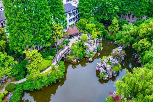 置身园中,身边的一景一物自有其美妙,抽身从高空俯瞰,草木山石、亭台楼榭尽收眼底,沈园又别有一番动人之感。
