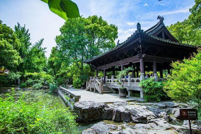 暂时搁置那段爱情往事,园子本身也是极美的,毕竟江南园林颜值总是在线的。亭台楼阁掩映在高大茂密的树木中,碧绿的池水上莲叶轻飘,及至荷花怒放时,美而清丽,又将是一番盛景。