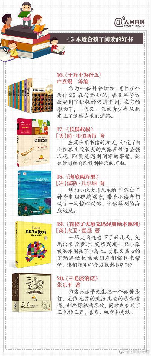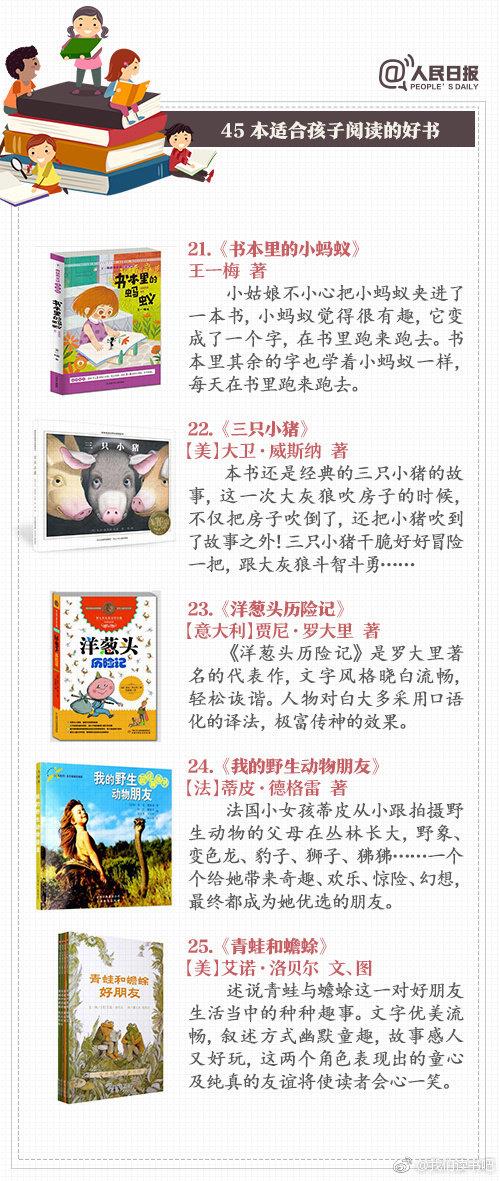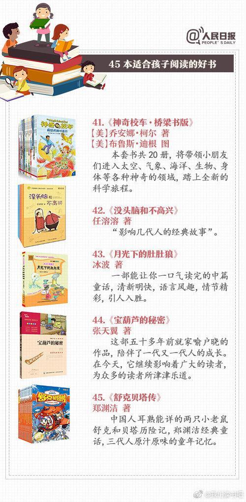 童话故事、科普知识、经典名著……45本适合儿童阅读的好书,让阅读成为孩子受益一生的习惯。