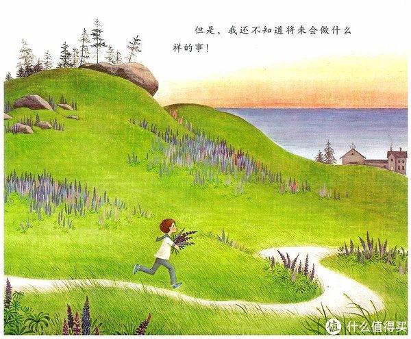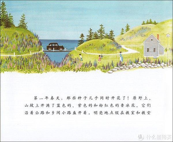 直到有一年的春天,她喜出望外地发现山坡上开满了一大片蓝色、紫色和粉红色的鲁冰花时,她知道什么是她要做的第三件事了。整个夏天,她的口袋里都装满了花种子,她把它们撒在了乡间的小路边、教堂后面。。。