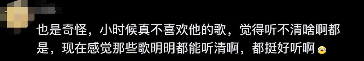网友说:也是奇怪,小时候真不喜欢他的歌,觉得听不清啥啊都是,现在感觉那些歌明明都能听清啊,都挺好听啊