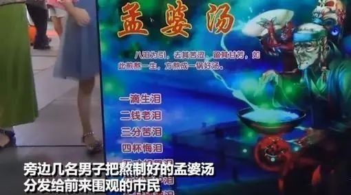 这个孟婆汤是个小姑娘扮成老人在送汤,夸张的打扮,离奇的故事,这就充分满足了大家的猎奇心态。