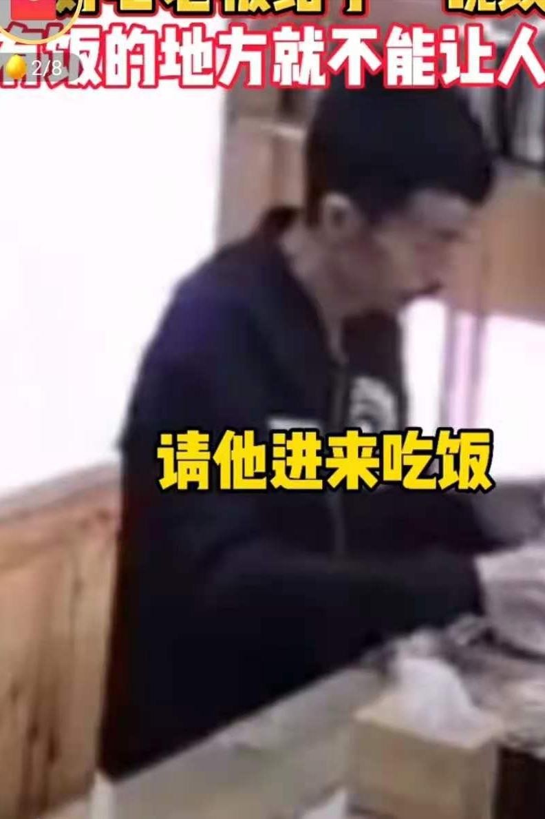 5月18日,山东烟台,一位瘦骨嶙峋的男子,走近店里一脸茫然地要吃的,询问过后才知道已经饿了很久,好心老板请他进店吃了一碗饺子,最后没吃完的也给他打包送至店门口。