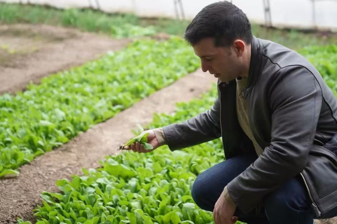 在天津武清区黄花店镇的蔬菜大棚里,一位外国友人来来回回忙碌着,正在检查蔬菜的长势。他就是澳大利亚人丹诺多尔索,中文名叫熊凯,目前是在天津工作和生活的一位农民。