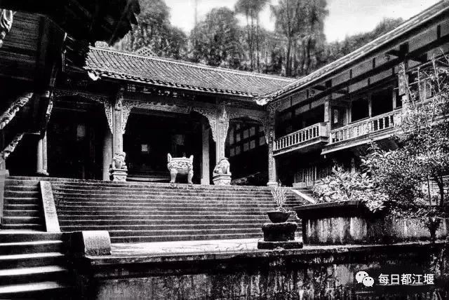 1908年, 都江堰市青城山下长生宫(今鹤翔山庄),尔尼斯特·亨利·威尔逊(英国)摄。都江堰市档案馆馆藏。