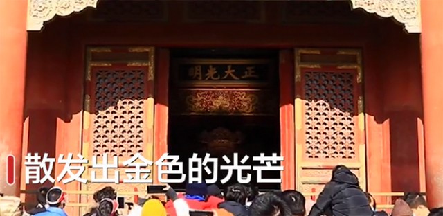 在今年的2020年的冬至日(12月21)日前后,不少游客拍到故宫乾清宫“正大光明”匾刚好于正午时分,被金色阳光点亮的奇观!阳光从西到东,从左到右,包括匾额下方的五条金龙也被一同缓缓照到,并散发出灿烂的金色光芒。这一靠造化才能难得一见的奇观,不禁令人啧啧称赞!