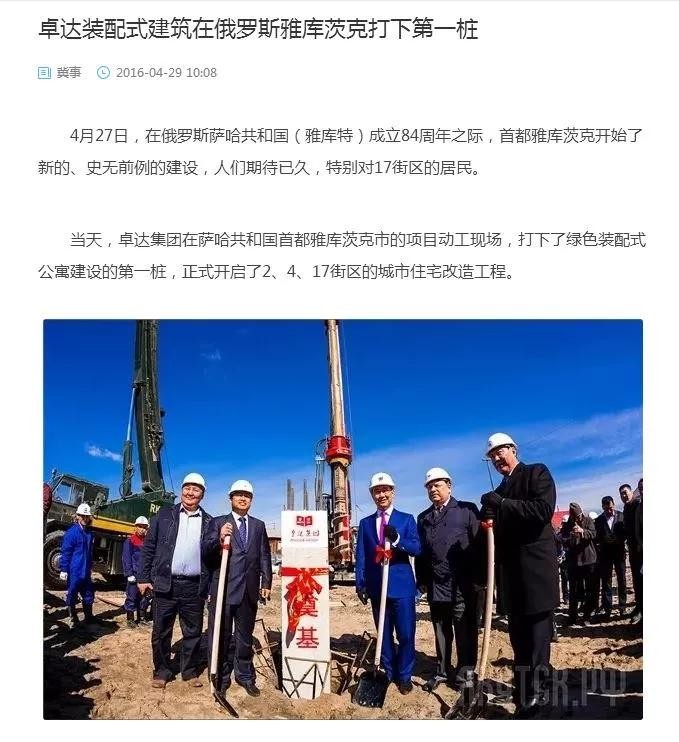 卓达大力宣传的去年俄罗斯创新论坛, 此后,媒体报道加上官方的支持,卓达产品获得了俄罗斯的一致好评。 在这一点上,卓达为中国的集成房屋产品打开俄罗斯市场,使俄罗斯民众接受这种理念的房屋,是立功了的。在此之前,俄罗斯人很少见过这种房屋,也不相信除了木房屋以外没有钢筋水泥砖头的房子能牢固的长期住人。 所以现在淳朴的俄罗斯人民币是相信卓达的,因为卓达还没开始在俄罗斯搞集资。假如无界的事情不出,估计这两年就要开始在俄罗斯搞集资了。