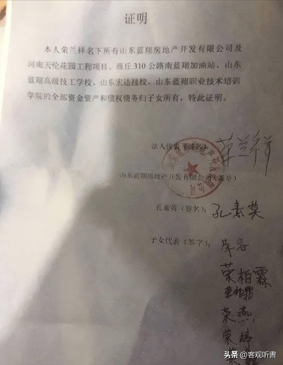 荣兰翔拿出了一份证明,上面还有孔素英的签名。这可把孔素英逼急了,为了防止自己的权益被侵害,孔素英直接接管了天伦花园,