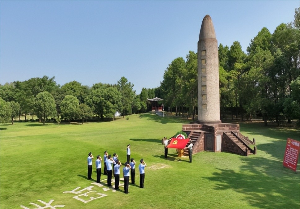 ▲徐警官和他的战友们在革命烈士纪念塔前重温入党誓词