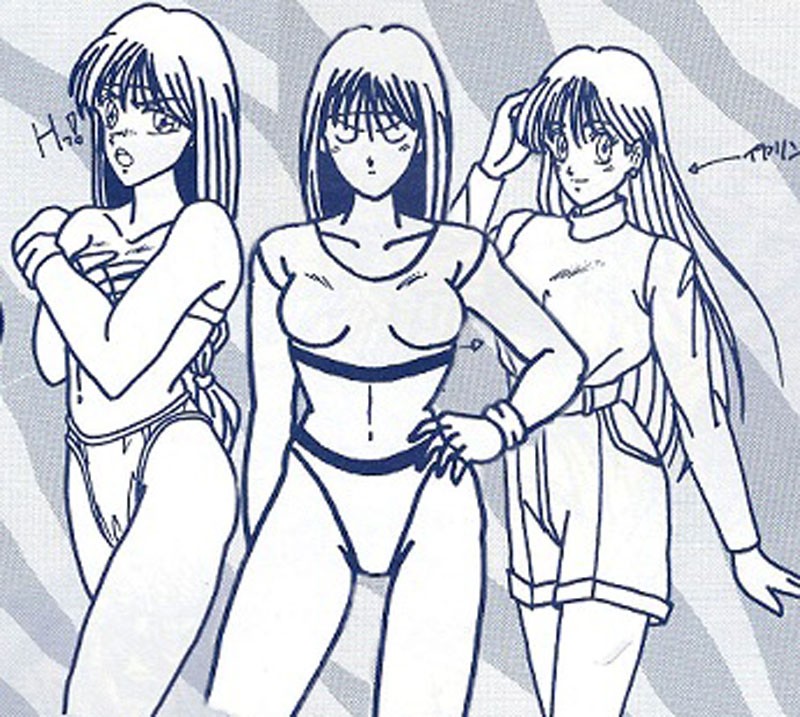 《拳皇94》的手稿中我们可以看出,最初的雅典娜并非是穿着武术服装的打女,而是一位时尚女孩,甚至还有类似不知火舞的造型。不过最终还是敲定走青春靓丽的清纯路线。