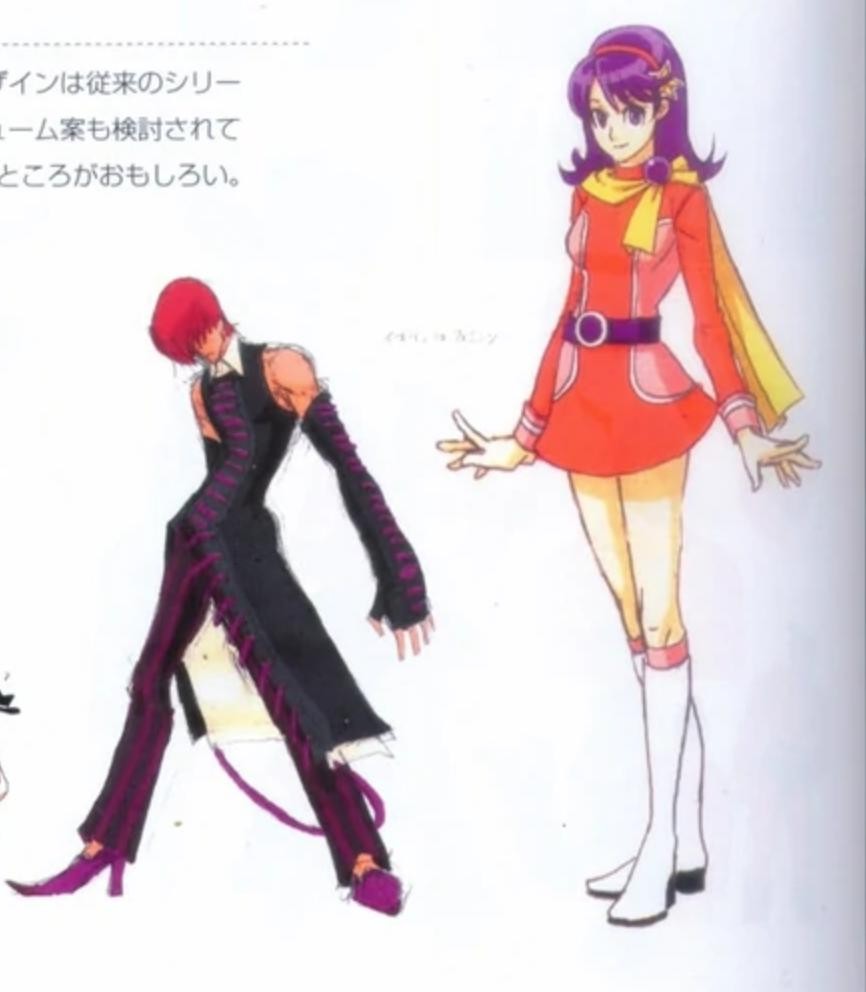 《拳皇12》雅典娜和八神庵的最初造型。看来SNK此时也想为格斗家们更换更加时尚的造型。