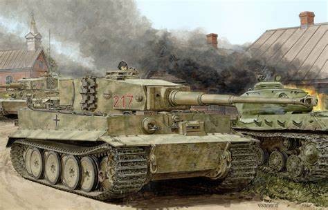 著名的马尼卡瓦村战斗中的虎式坦克,传奇卡尔尤斯车组就是题图的217号车,两辆虎式偷袭苏军共击毁23辆坦克
