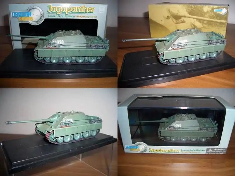 模型本体宣传照,可见描述的是1945年匈牙利前线,留意全车墨绿色涂装实际很少有。似乎离开生产线就参战了。