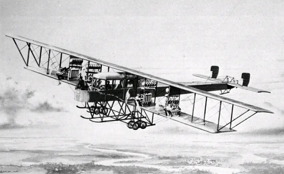 当时,由于技术所限,发动机的单台功率较小,而且过重的单台发动机也给当时薄弱的结构设计带来困难,因此当时的飞机也难以做得很大。鉴于此,西科斯基决定研制多发飞机,尽管在此之前一些航空人士曾经断言:多发动机大型飞机在技术上是行不通的。1913年5月26日,西科斯基亲自驾驶著名为“俄罗斯勇士”的四发大型飞机飞上蓝天,飞行高度122米,时速104公里,这架飞机也是第一架拥有封闭驾驶舱和客舱的飞机。