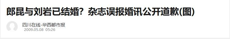 《郎昆与刘岩已结婚?杂志误报婚讯公开道歉》四川在线