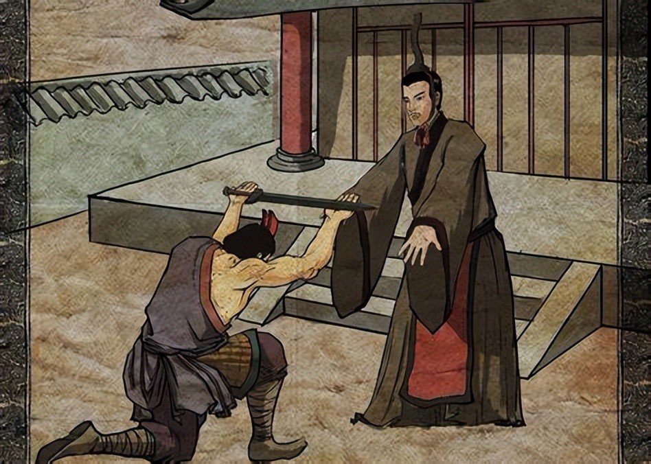 樊於期自刎献头,太子丹准备锋利的匕首并派秦舞阳做荆轲副手。